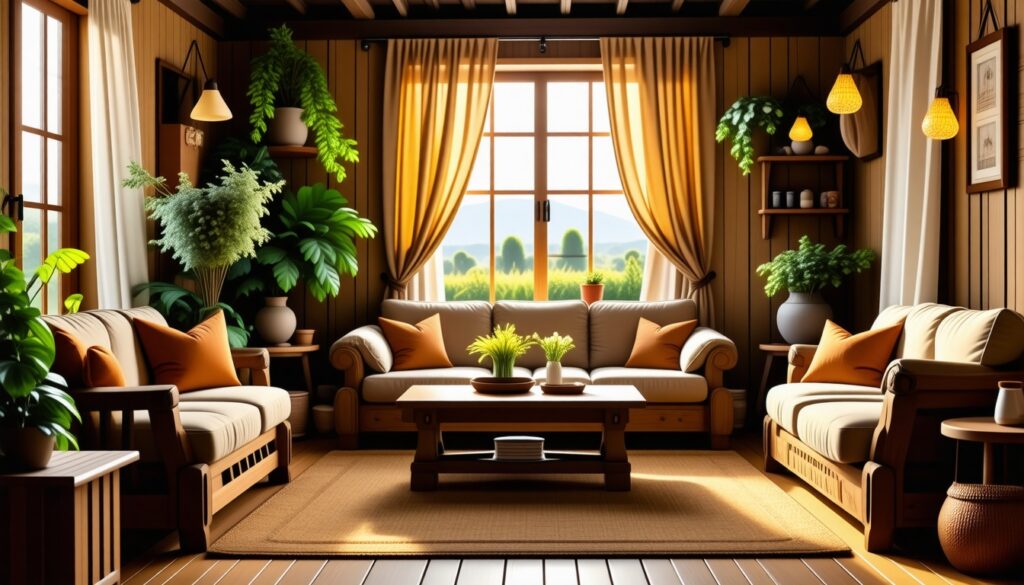 Como posso integrar móveis rústicos de madeira na minha decoração?